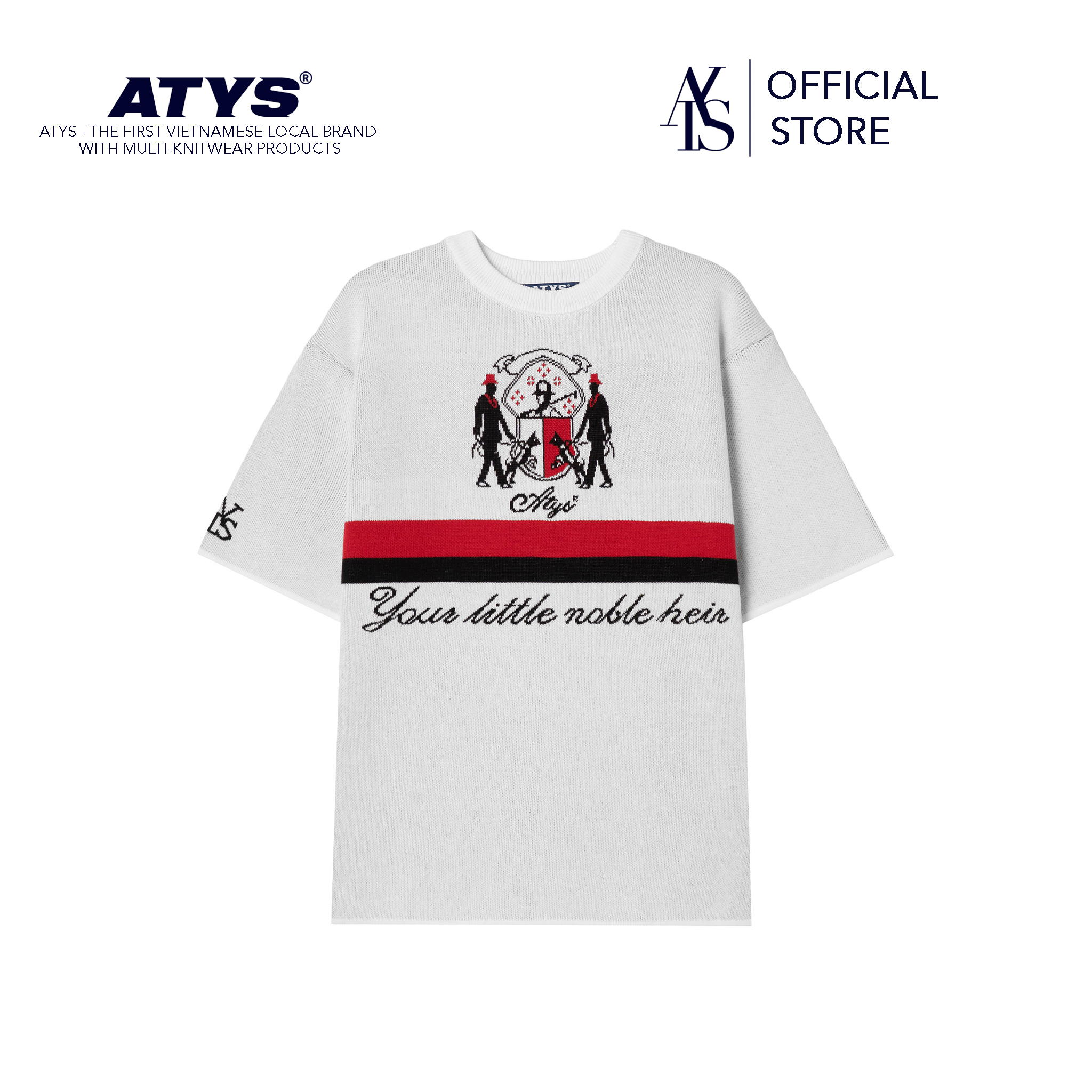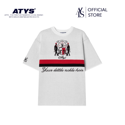 Hai đường kẻ ngang màu tương phản chạy dọc thân áo, gợi nhắc phong cách cổ điển nhưng được thổi vào tinh thần hiện đại. Logo thêu huy hiệu quý tộc cùng dòng chữ “Your little noble heir” chính là chi tiết làm nên tinh thần độc đáo, khẳng định cá tính riêng của người mặc.