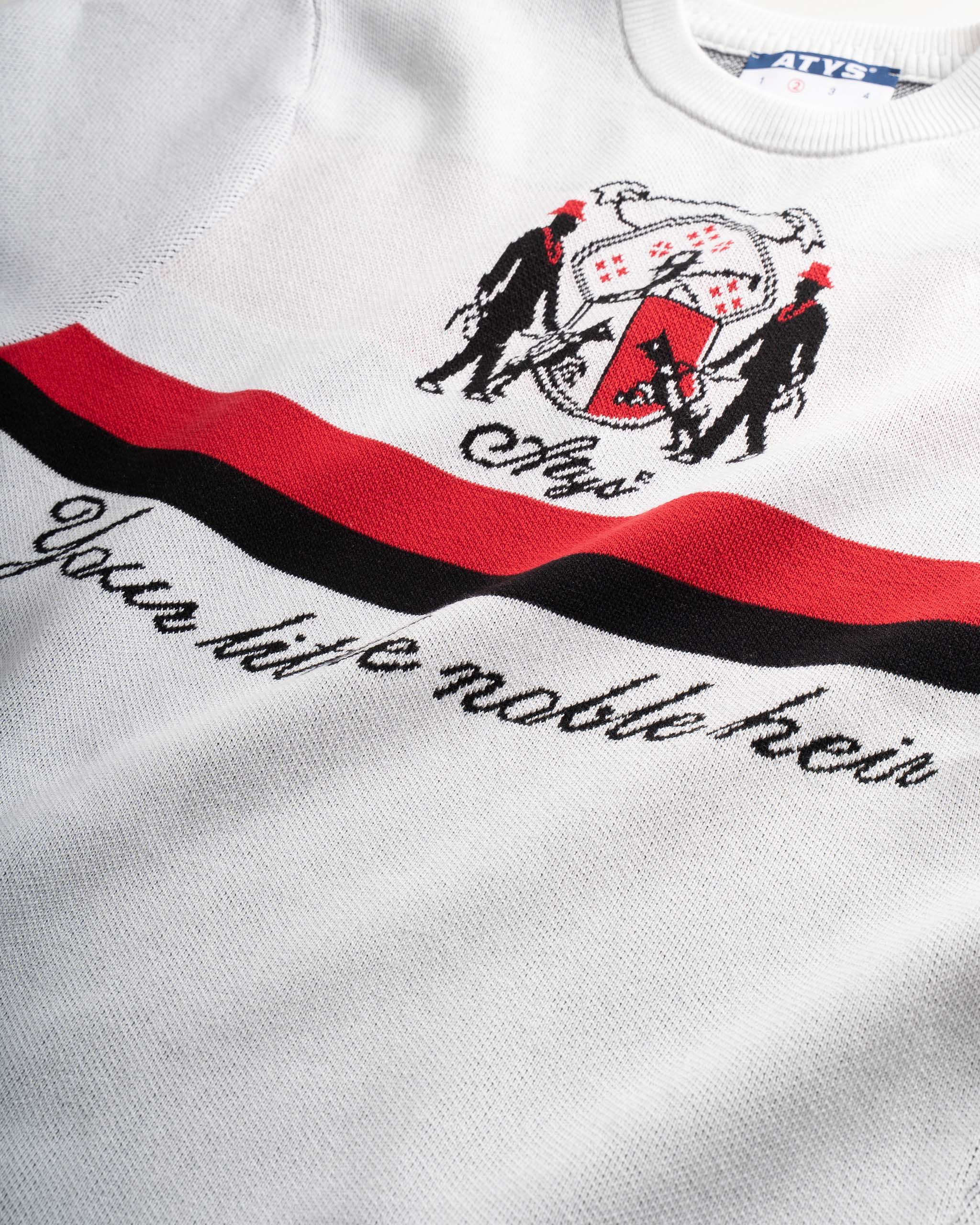 Two contrasting stripes running across the body, evoking a touch of classic style reimagined with a modern spirit. The embroidered regal crest logo paired with the phrase “Your little noble heir” adds a unique character, making the piece truly stand out.