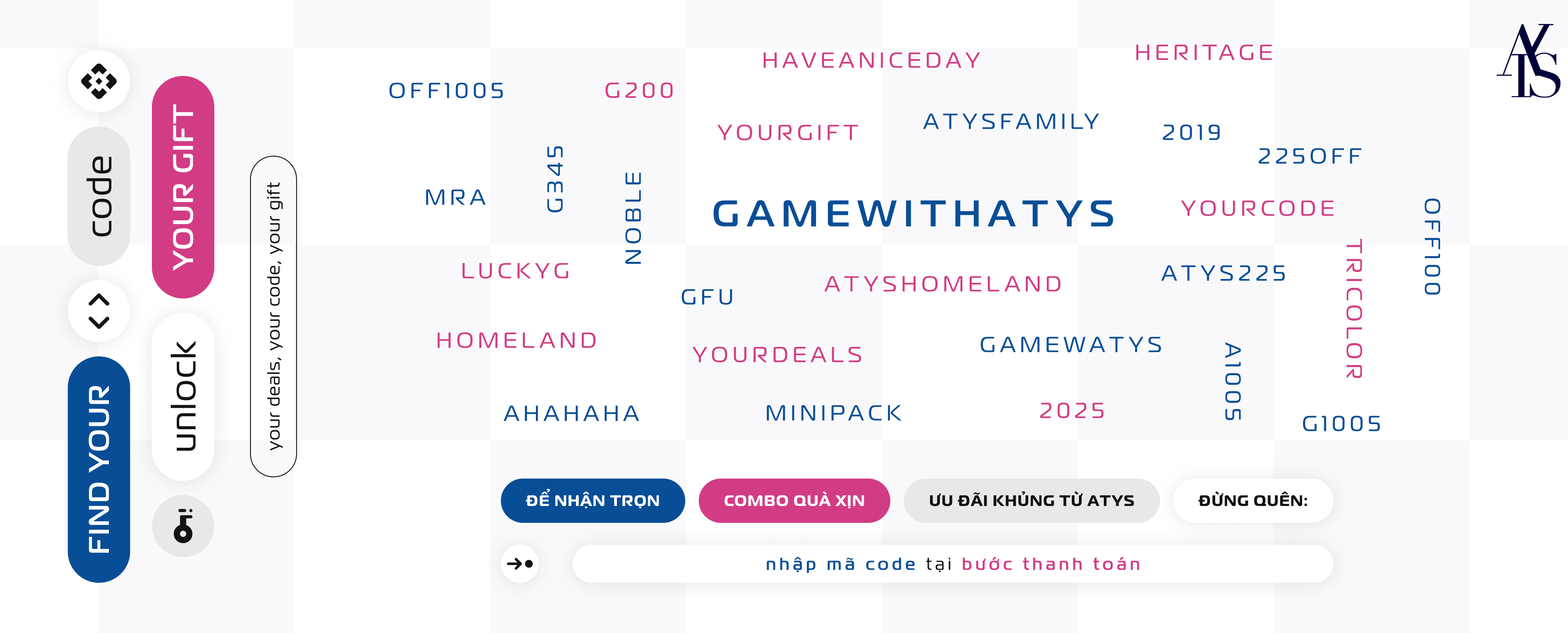 Liệu bạn có phải là 1 trong số những người "thắng mọi cuộc chơi"? Hãy thử sức mình tại ATYS, truy tìm mã code online, nhận quà khủng gồm ưu đãi lớn hay quà độc quyền trị giá lên đến 800.000 duy nhất tháng 7 này!